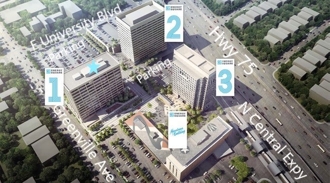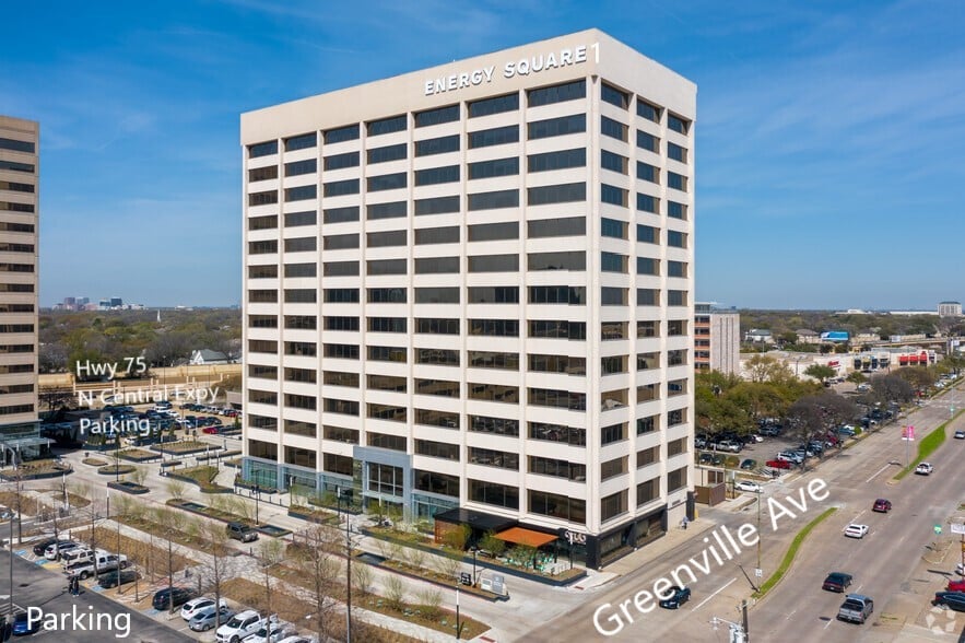 Parking is available on the west and south side of Energy Square building one. Parking is accessed off Greenville Ave near the intersection of Greenville Ave and E University Blvd. There are two entrances available on the west or south side.